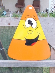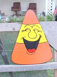 The spinning ghosts have a different face on each side of them so when they spin sometimes it looks like they are winking at you depending on the face. The signs and Tombstones can have any kind of saying on them you want. Those pictured are examples. The candy corn are staked items that go into the ground. Don't forget email me with any questions you might have and prices.